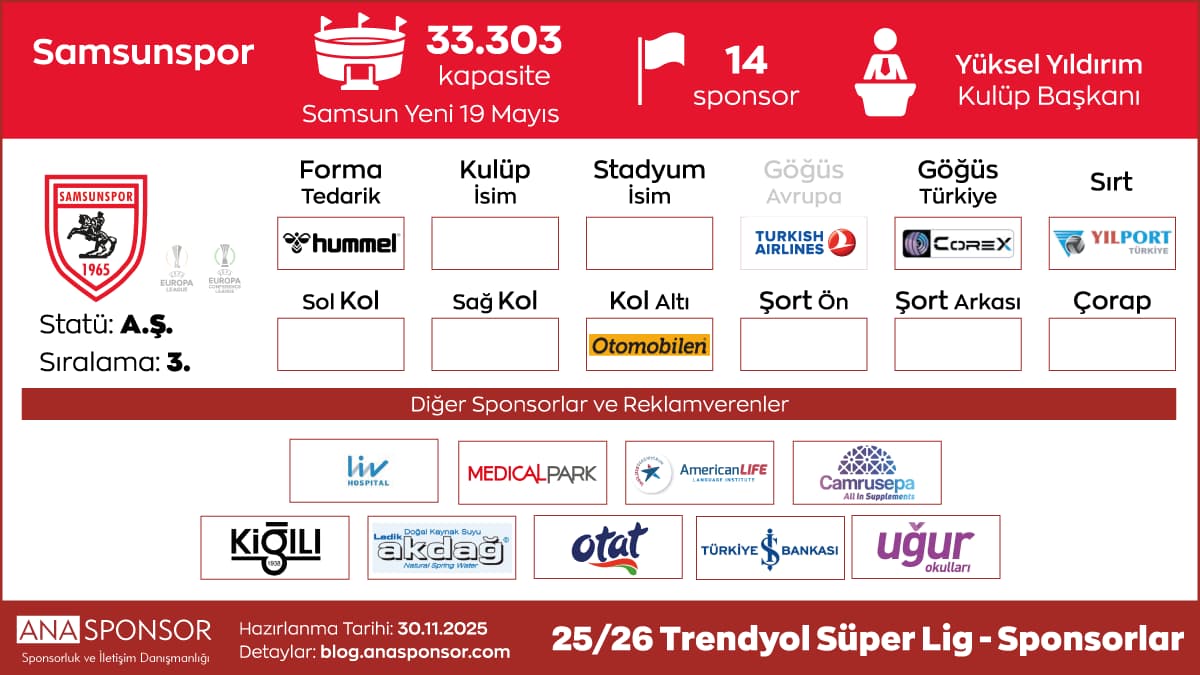 Samsunspor Sponsorları (25/26 Sezonu)
