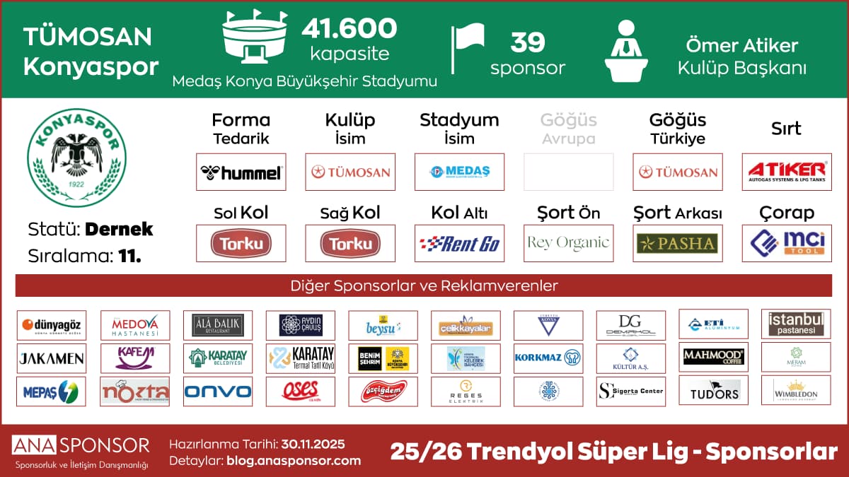 TÜMOSAN Konyaspor Sponsorları (25/26 Sezonu)