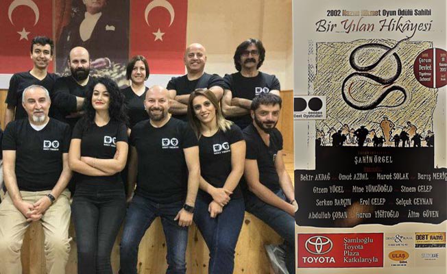 - Dost Oyuncuları, Çorumlu yazar ve tiyatro sanatçısı Şahin Örgel’in yazıp yönettiği, 2002 Nazım Hikmet Oyun Ödülü sahibi “Bir Yılan Hikâyesi” adlı oyun Şamlıoğlu Toyota Plaza’nın sponsorluğunda Çorumlu tiyatro severlerin karşısına çıkıyor.