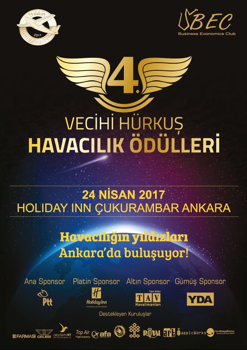 - Türk Hava Kurumu Üniversitesi 4. Vecihi Hürkuş Havacılık Ödülleri Töreni, PTT ana sponsorluğunda 24 Nisan 2017’de Ankara’da olacak.