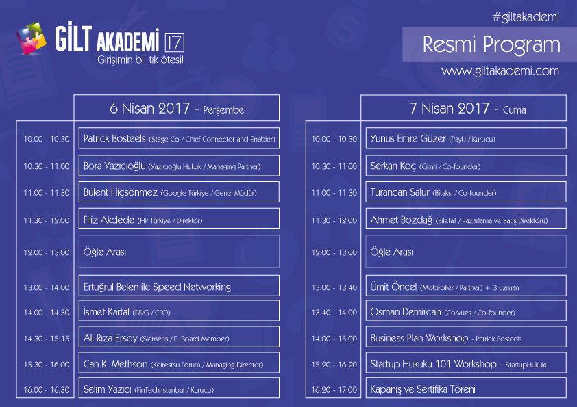 - 6-8 Nisan’da Kadir Has Üniversitesi’nde gerçekleşecek olan ve sponsorları arasında olduğumuz giltakademi17 etkinlik programı açıklandı.