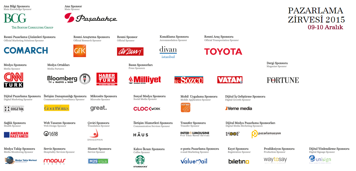 - 9-10 Aralık 2015 tarihinde düzenlenen Pazarlama Zirvesi’ 15′ in tüm sponsorlarını paylaştık.