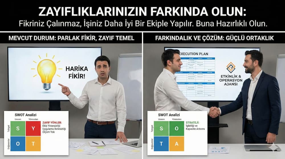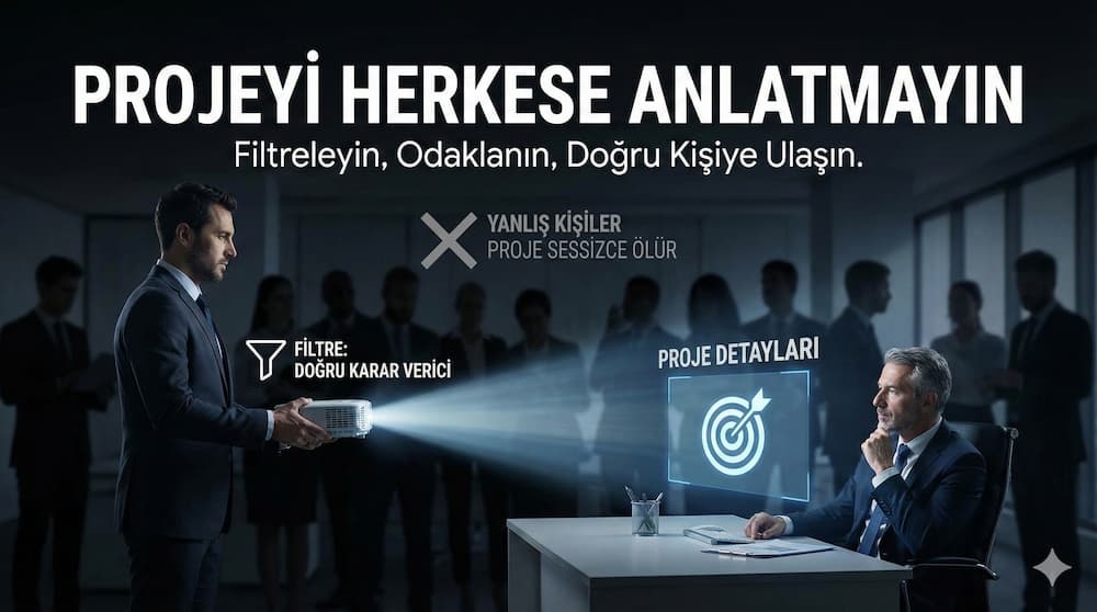 - Vazgeçilmez Olduğunuzu Hissettirin: Projenizi anlatırken kendinizi geri plana itiyorsanız, fikri öne çıkarıp kendinizi görünmez kılıyorsanız; o zaman evet, o fikir sizden kopabilir. Çünkü ortada sadece bir fikir kalır. Fikir tek başına sahipsizdir. Ama siz “Bu proje benim deneyimim, ilişkilerim, sahadaki reflekslerim olmadan yürümez” hissini veriyorsanız, kimse sizi devre dışı bırakmak istemez. Projenizi değil, kendinizi ve ekibinizi merkeze koyun.